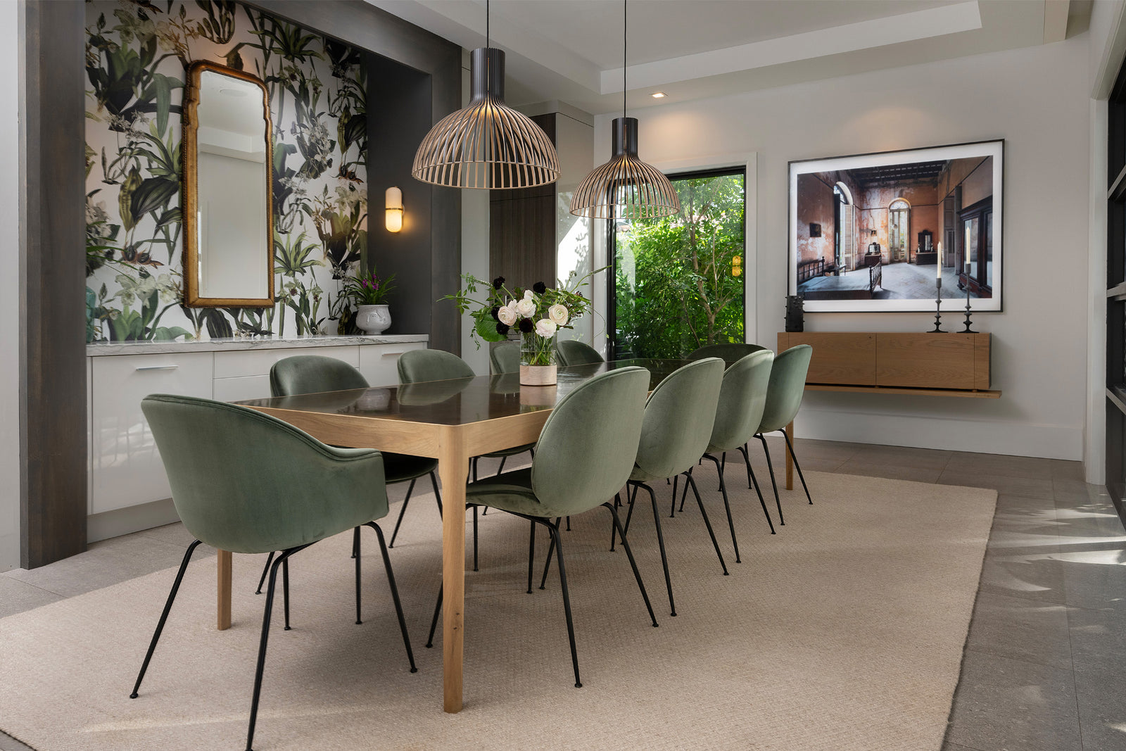 I just finished my dining room project and I couldn’t be happier with my results. The Vintage Birds and Monkeys Chinoiserie Night wallpaper is so gorgeous and dramatic. The people at Sarza were wonderful to work with. I was able to perfectly customize the scale on the paper to fit my large dining room.
