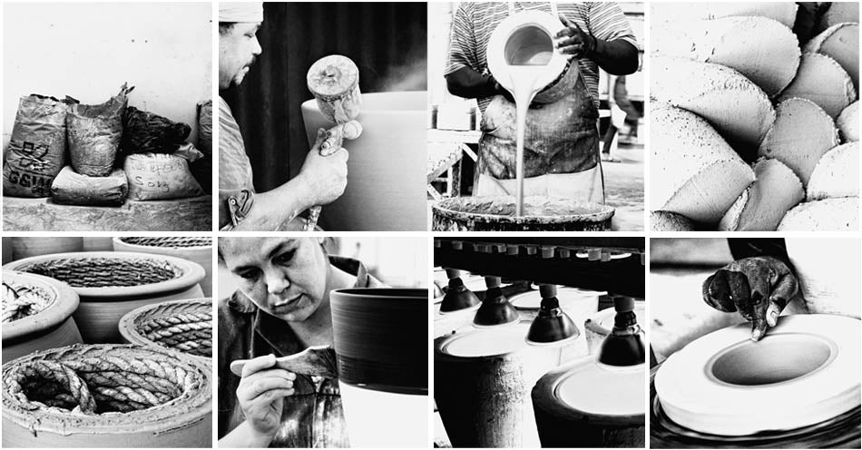Prêt-à-Pot stands out against mass produced ceramics. These gorgeous, functional tableware and home décor pieces are inspired by nature and crafted by hand. They pass through at least six hands before being ready for the kiln, with each person adding their own personal hand-print.