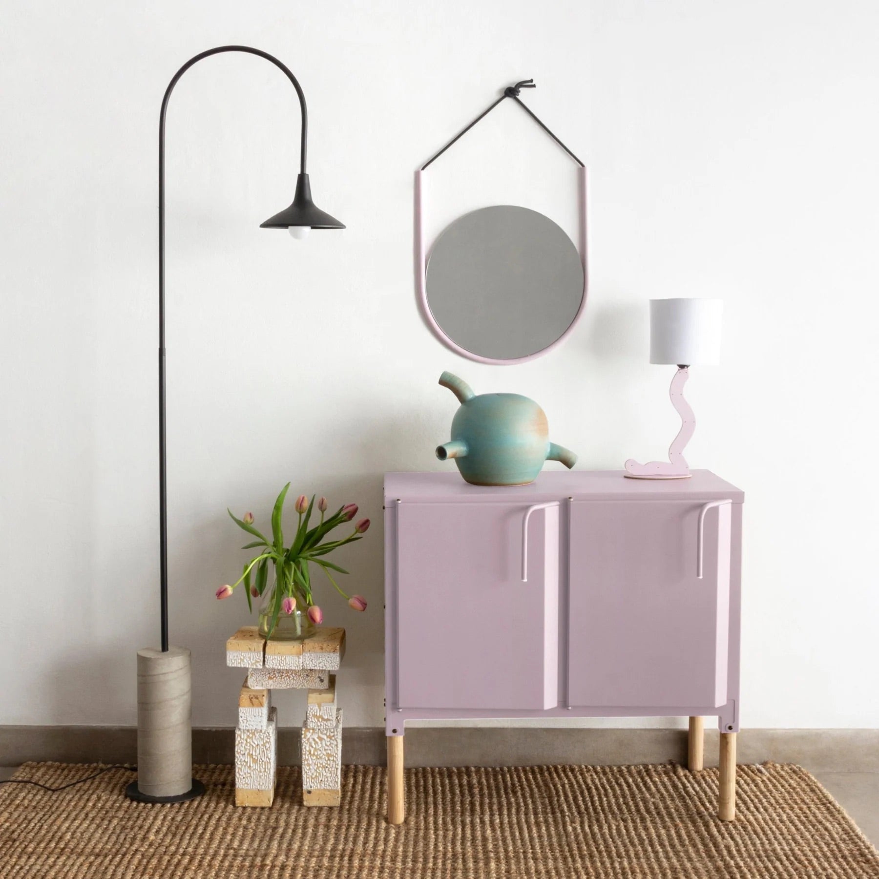 Mounted to the wall but visually light, it functions equally well as a hanging mirror or wall-mounted mirror, adding texture and interest to any interior. Whether used as an entryway mirror or styled as a quiet focal point in a bedroom or hallway, it reflects the Dokter and Misses approach to bold, considered design.