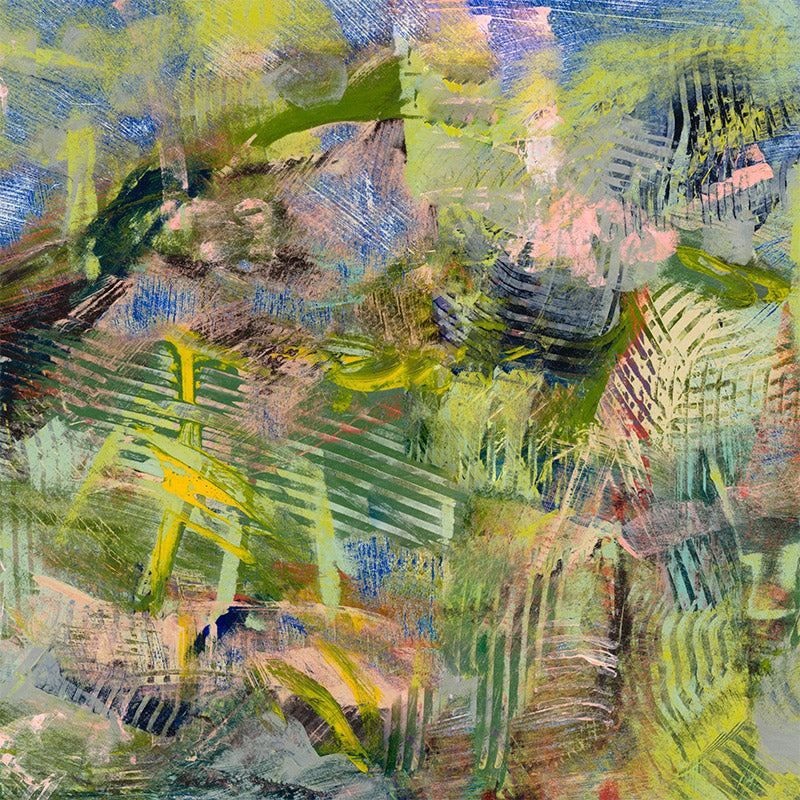 • Dangerous After Sunday by Michelle van Reenen is an abstract exploration of colour, texture, and transformation. Created using acrylics and a sander, the work embraces unpredictability—where layered surfaces are broken down to reveal unexpected harmonies beneath. The sanding process exposes hidden tones and textures, unifying bold and subtle colours into a cohesive, emotive whole. This piece speaks to the tension between control and surrender, capturing the raw beauty of imperfection and the emotional resonance of colour when structure gives way to intuition.