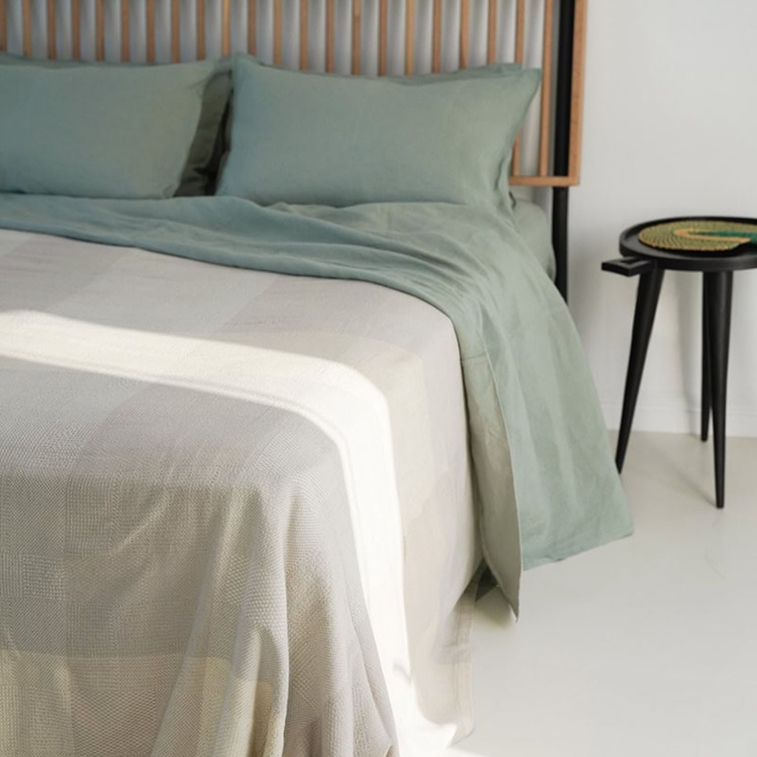 Multi-textural blanket, woven with cotton and linen. Suited for all seasons.