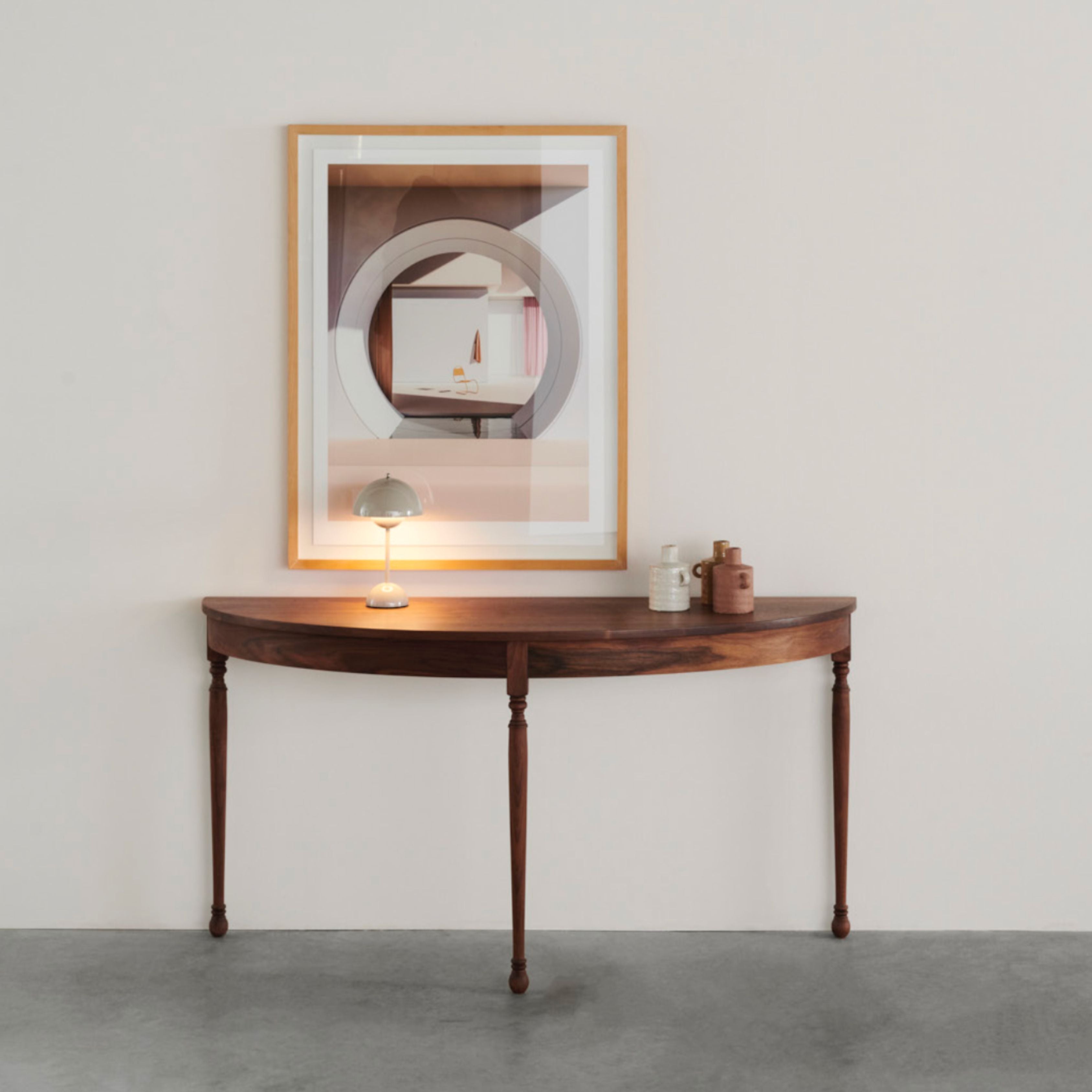 A contemporary interpretation of an antique design, the Half Moon server is elegant in its aesthetic, whilst maintaining a contemporary edge. Three turned legs bring a sculptural element to the otherwise minimal design, while providing an unconventional point of interest.