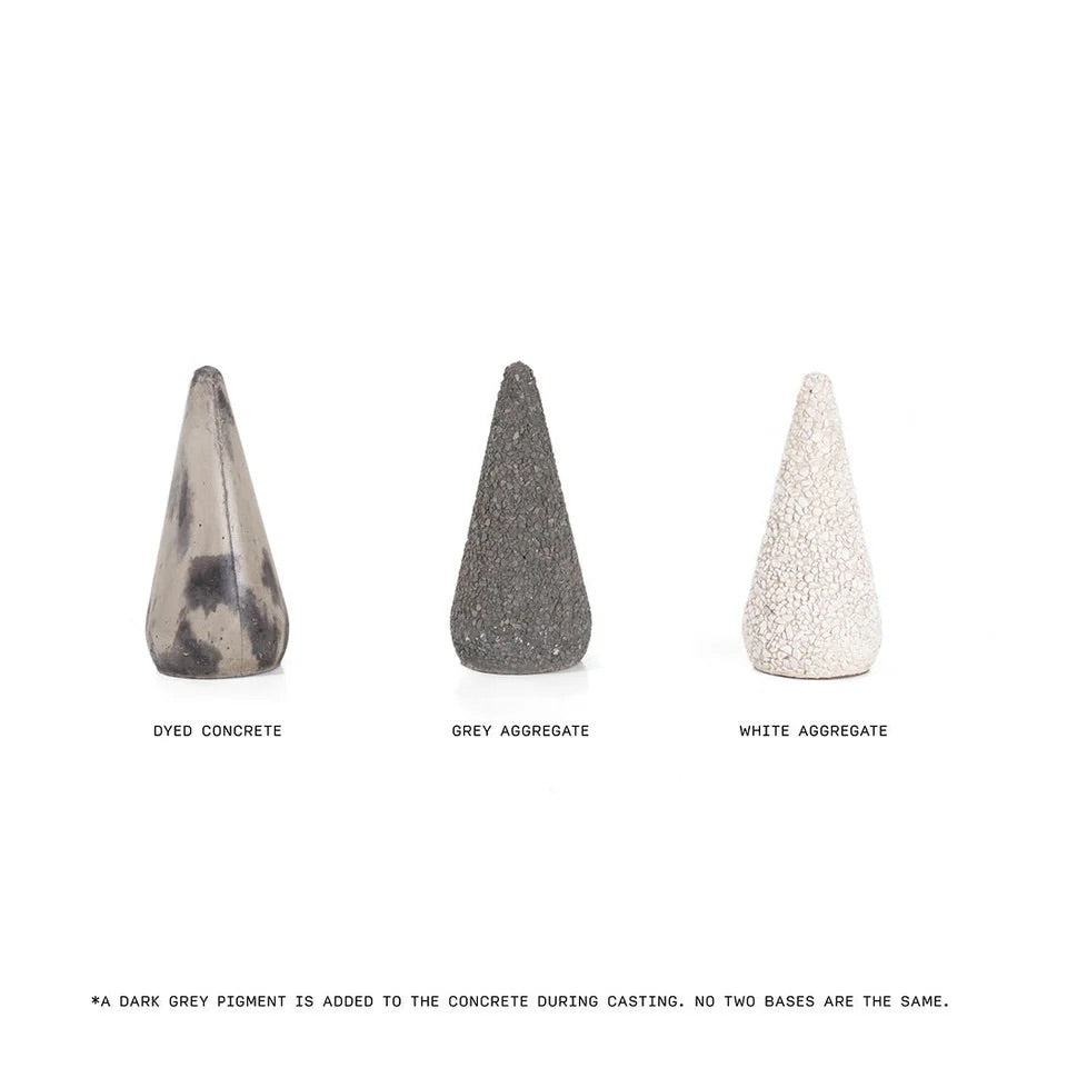 This designer coffee table makes a strong visual statement while remaining grounded in craftsmanship and materiality. The base is available in three distinct materials or finishes- stone aggregate in white or grey, or dyed concrete- where dark pigment is mixed directly into the cast, making each version subtly unique. A cork underside completes the thoughtful detailing.
