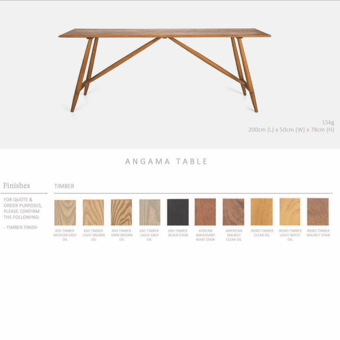 The Angama Table is available in a selection of timbers.