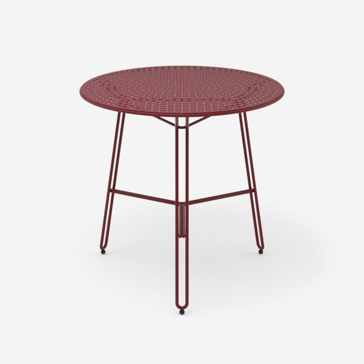 The Polka Café 3-seater has a diameter of 30 inches and is 29.5 inches tall, a perfect fit for dining chairs. Choose from more than 20 delicious UV-stable powder coat colours. Featured above is the Polka Cafe Table 3-Seater in Purple Red.